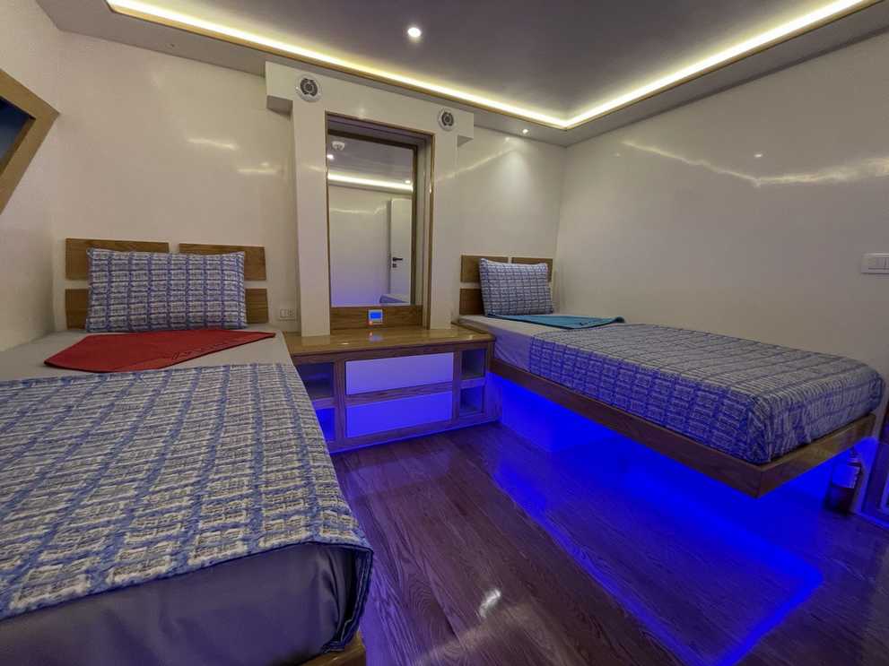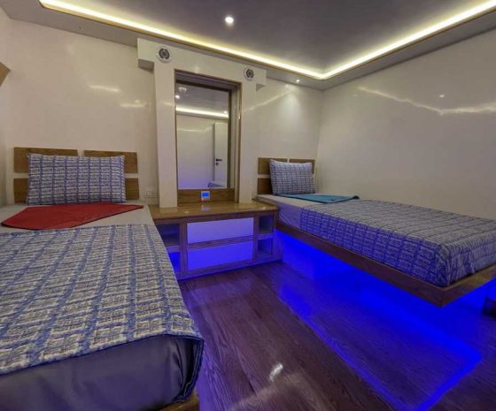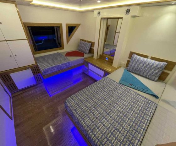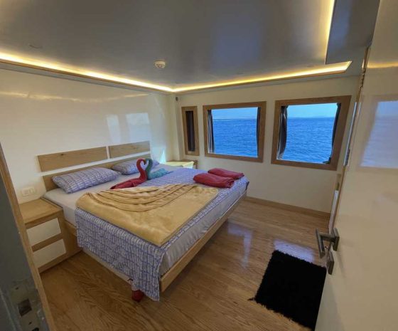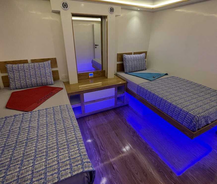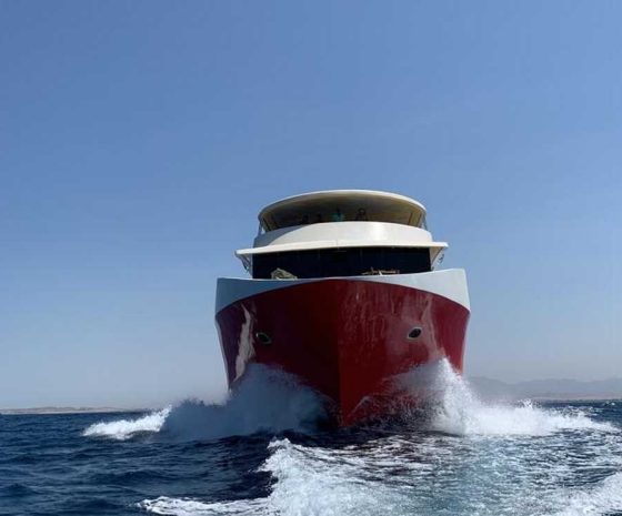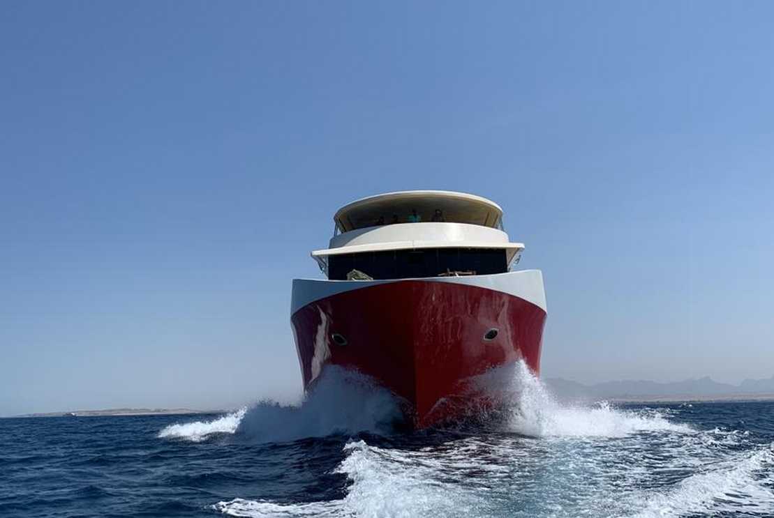 L’Argo, mis à l’eau en septembre 2023, est un bateau de croisière plongée de catégorie haut de gamme disposant de dimensions généreuses avec une longueur de 42 mètres et une largeur de 8.9 mètres. L’équipage, composé de 12 membres, accueille jusqu’à 24 passagers dans 12 cabines tout confort, toutes équipées de douche, toilettes, air conditionné et minibar, réparties entre le pont principal et le pont supérieur, incluant des suites spacieuses.