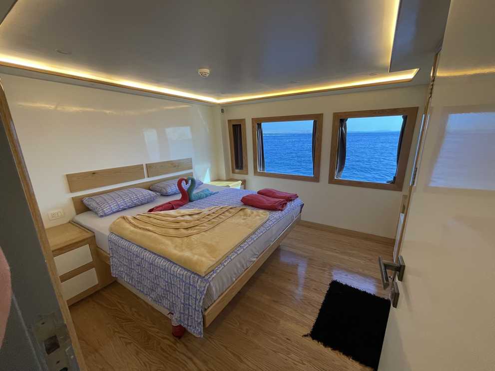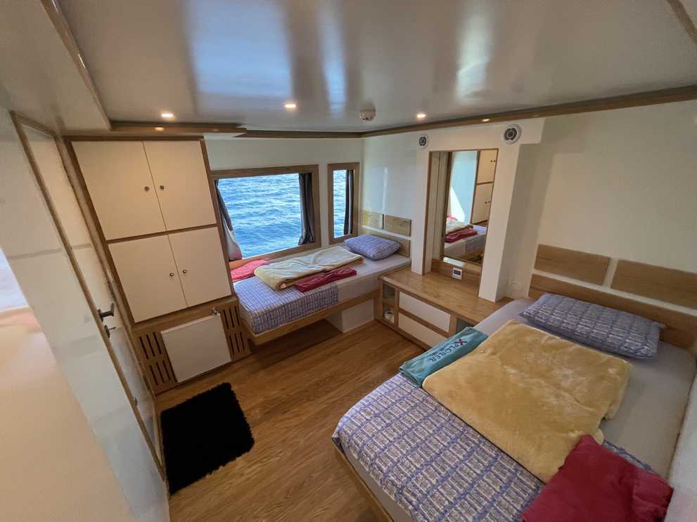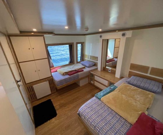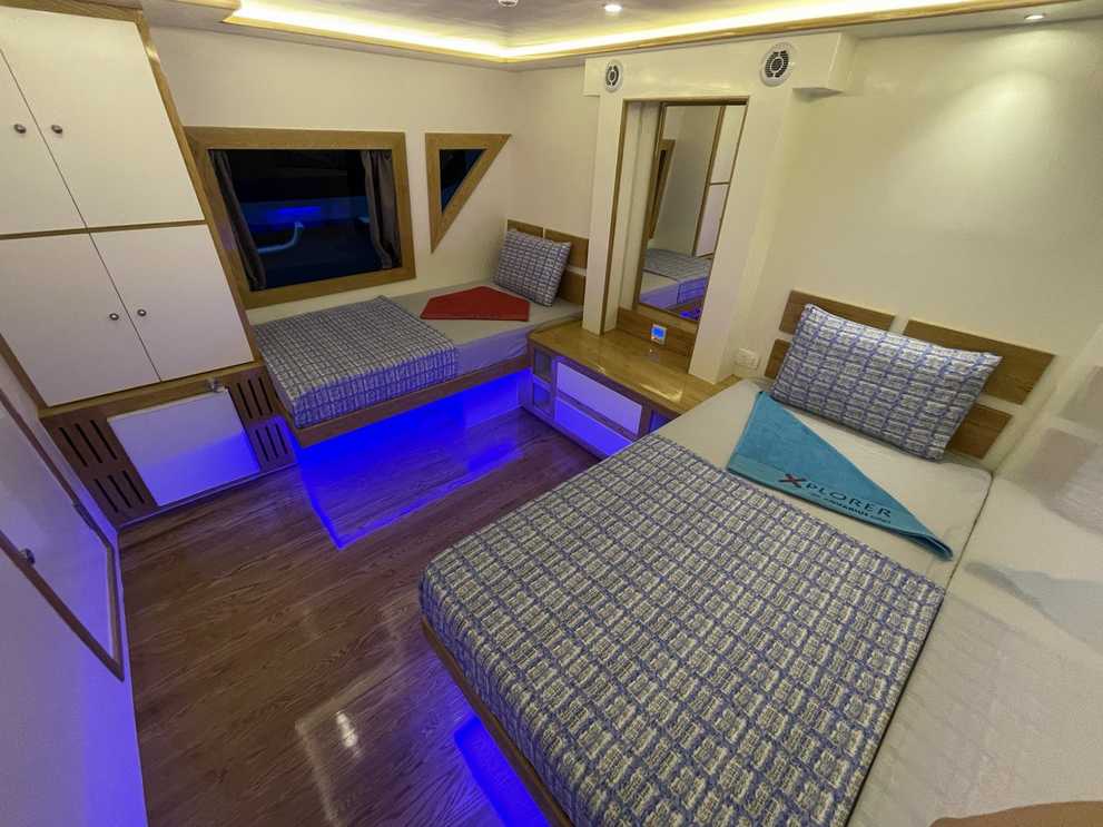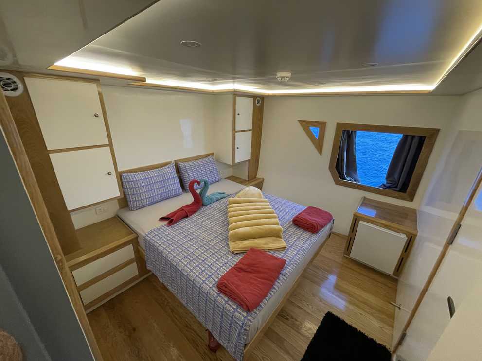 L’Argo, mis à l’eau en septembre 2023, est un bateau de croisière plongée de catégorie haut de gamme disposant de dimensions généreuses avec une longueur de 42 mètres et une largeur de 8.9 mètres. L’équipage, composé de 12 membres, accueille jusqu’à 24 passagers dans 12 cabines tout confort, toutes équipées de douche, toilettes, air conditionné et minibar, réparties entre le pont principal et le pont supérieur, incluant des suites spacieuses.