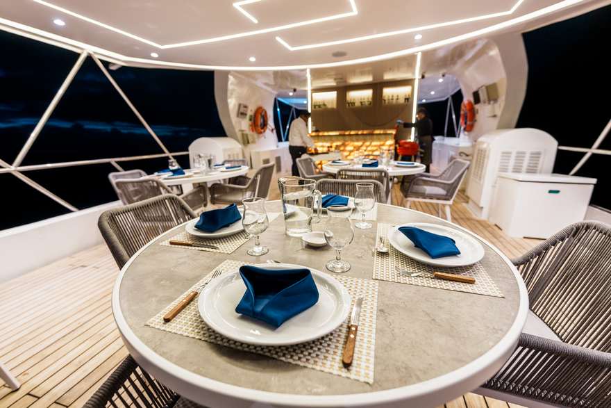 7 nuits / 8 jours de croisière en pension complète avec 3 repas par jour, sauf le dîner du dernier soir et collations entre les plongées