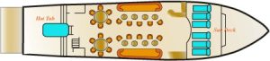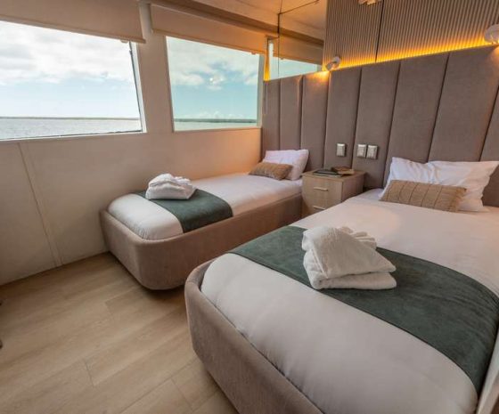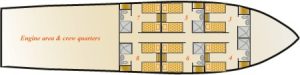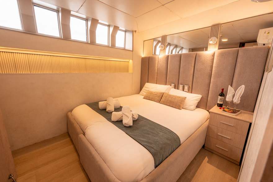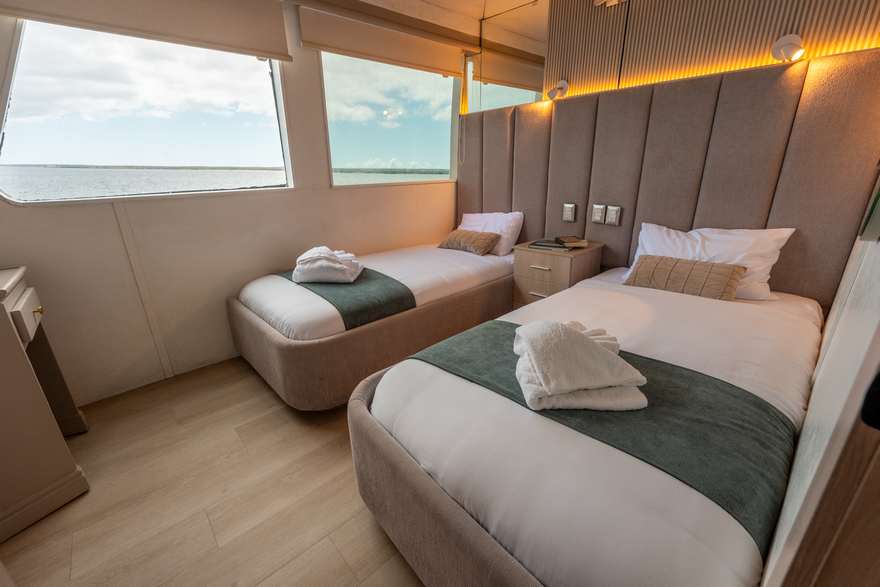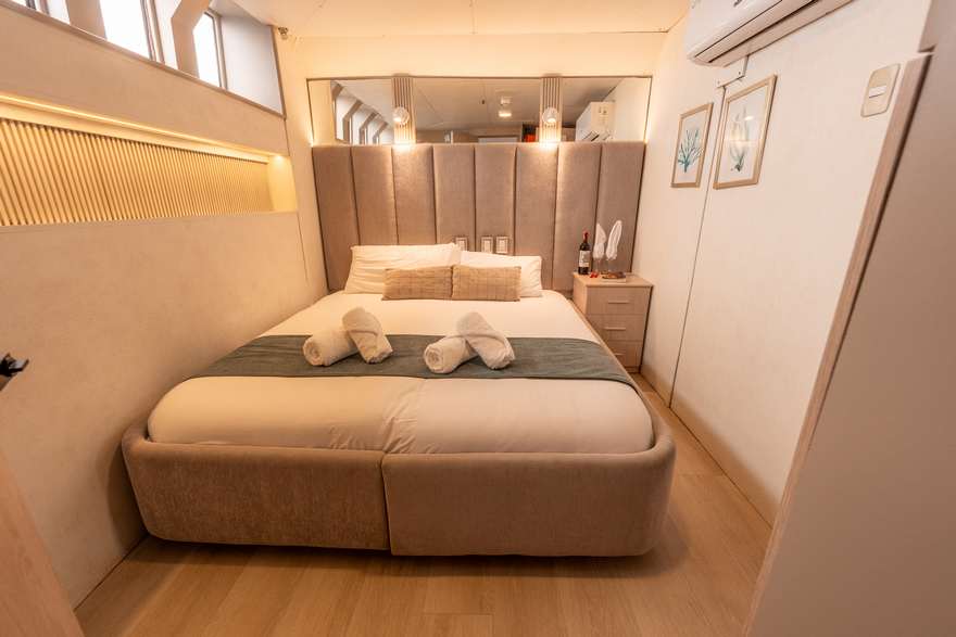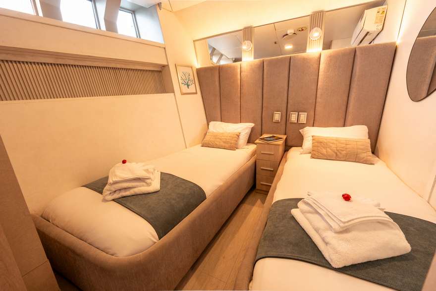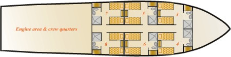 Les 8 cabines sont situées sur les ponts principaux (2 cabines) et inférieurs (6 cabines).