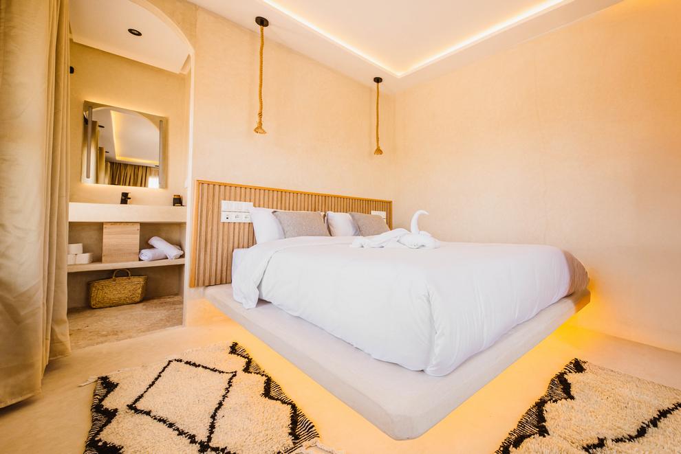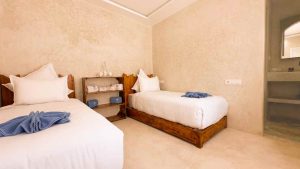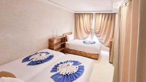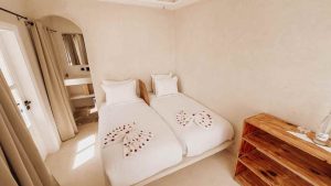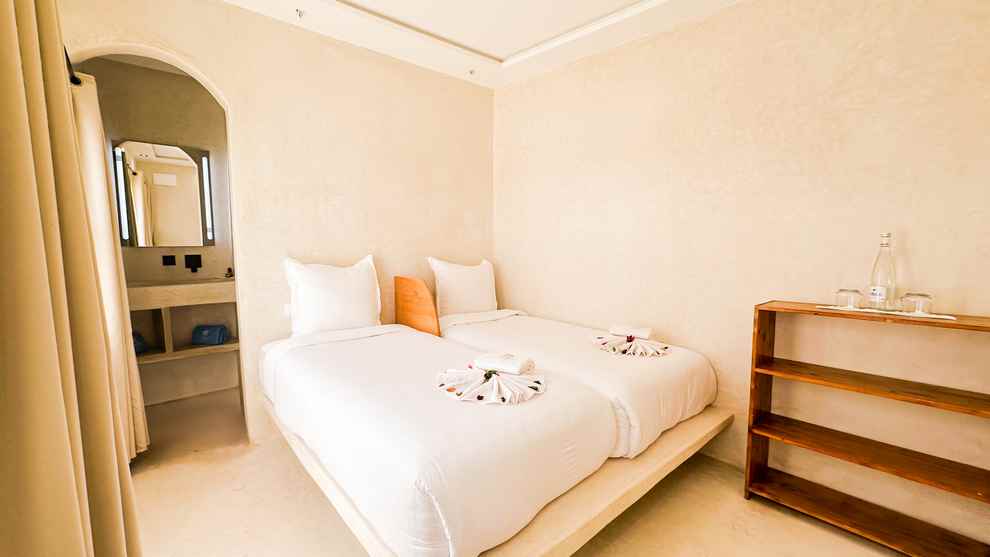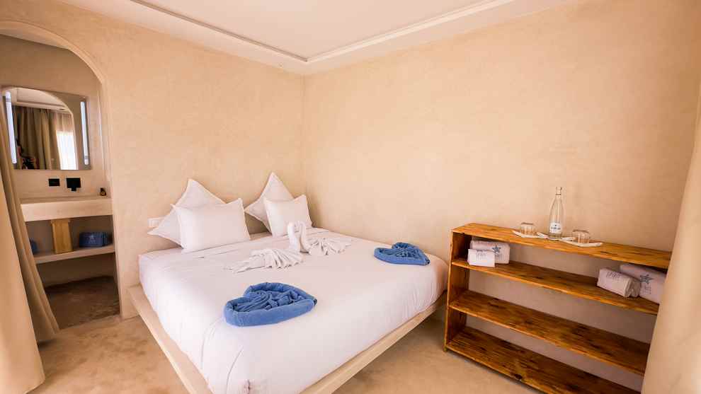Le New Spirit Dakhla propose 30 bungalows avec 3 catégories d’hébergements disponibles, en pension complète avec eau minérale incluses. Tous les bungalows sont équipés d’un lit double, certains d’un lit supplémentaire, d’une armoire avec coffre-fort et d’une salle de bains privative avec douche et WC. Ils disposent également d’une petite terrasse avec sièges juste à deux pas de la mer.