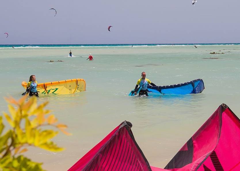 L’équipe de professionnels locaux labélisée IKO nous accueille et enseigne tous les niveaux de kite en anglais, espagnol et allemand. Les cours de kite sont privés ou bien avec un instructeur pour 2 élèves. Chaque élève dispose de son propre kite après les premiers tests ou bien dés que le niveau de sécurité est respecté après 1 à 2 heures de cours.
